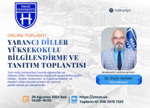Sevgili Öğrenciler, Yabancı Diller Yüksekokulu tarafından Hazırlık Eğitimi ve Yeterlilik Sınavları hakkında bilgilendirmek üzere 29.08.2023 tarihinde saat 14:00’da bir çevrim...