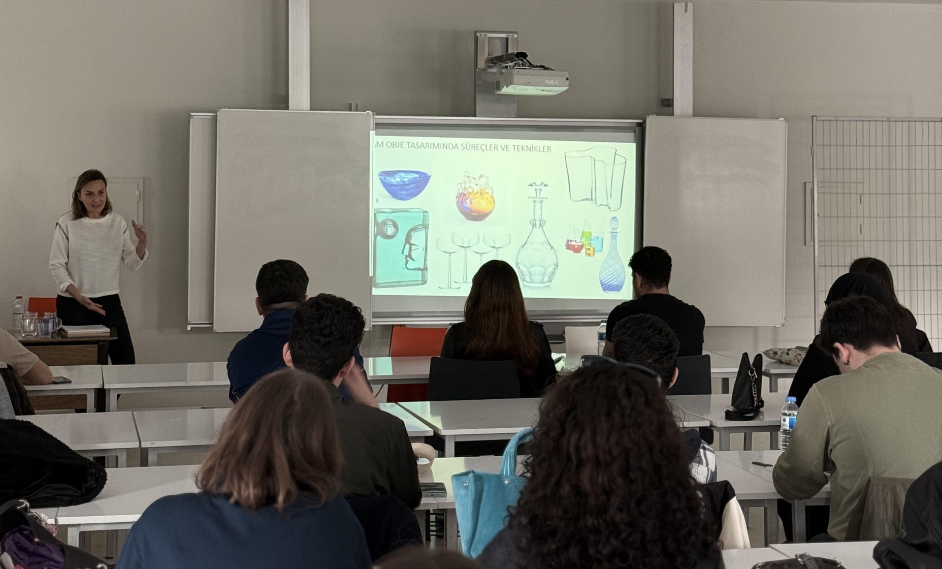 Seminer kapsamında, camın üretim yöntemlerinin tasarım kararlarına etkisi ve malzeme temelli yaklaşımın tasarım pratiğindeki rolü anlatıldı. Konuğumuza ve katılan tüm öğrencilerimize teşekkür ederiz.