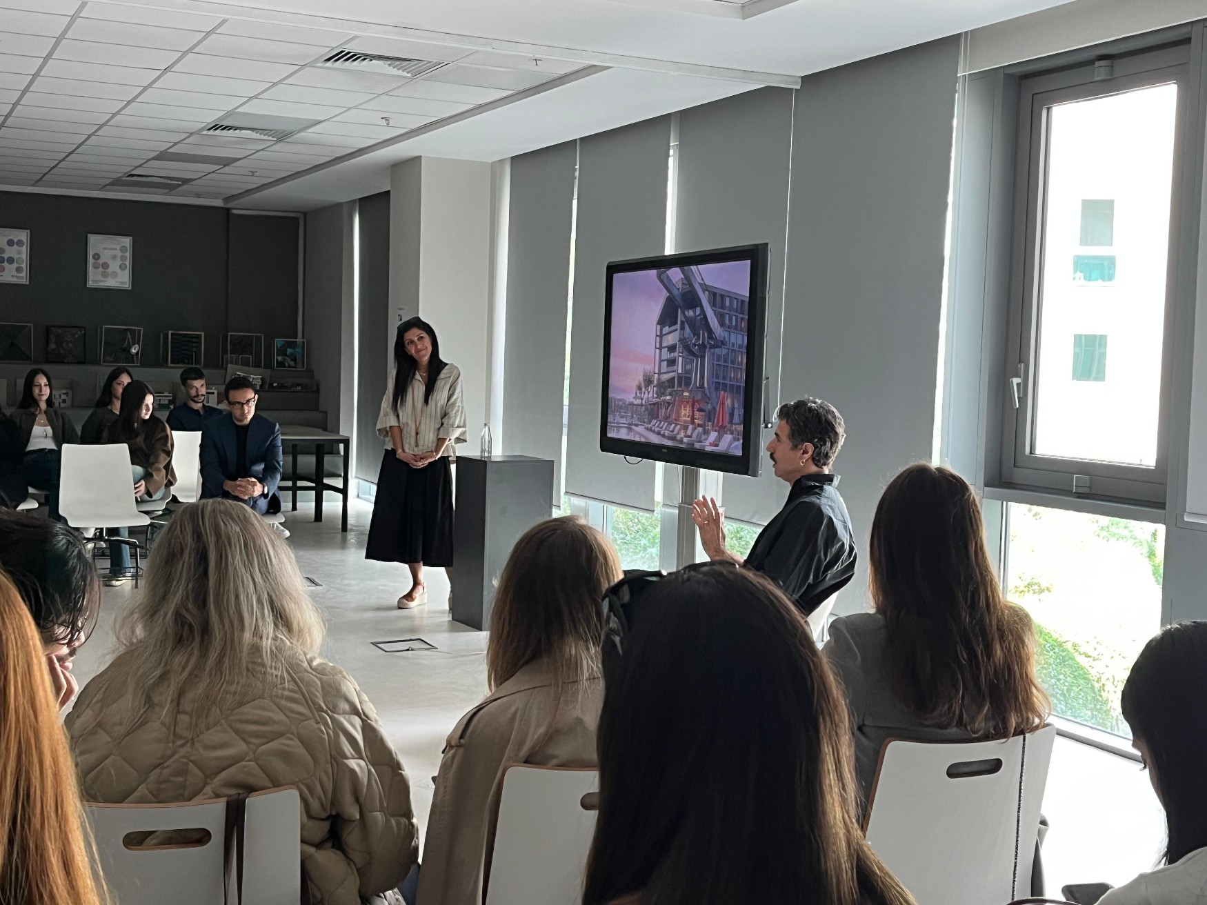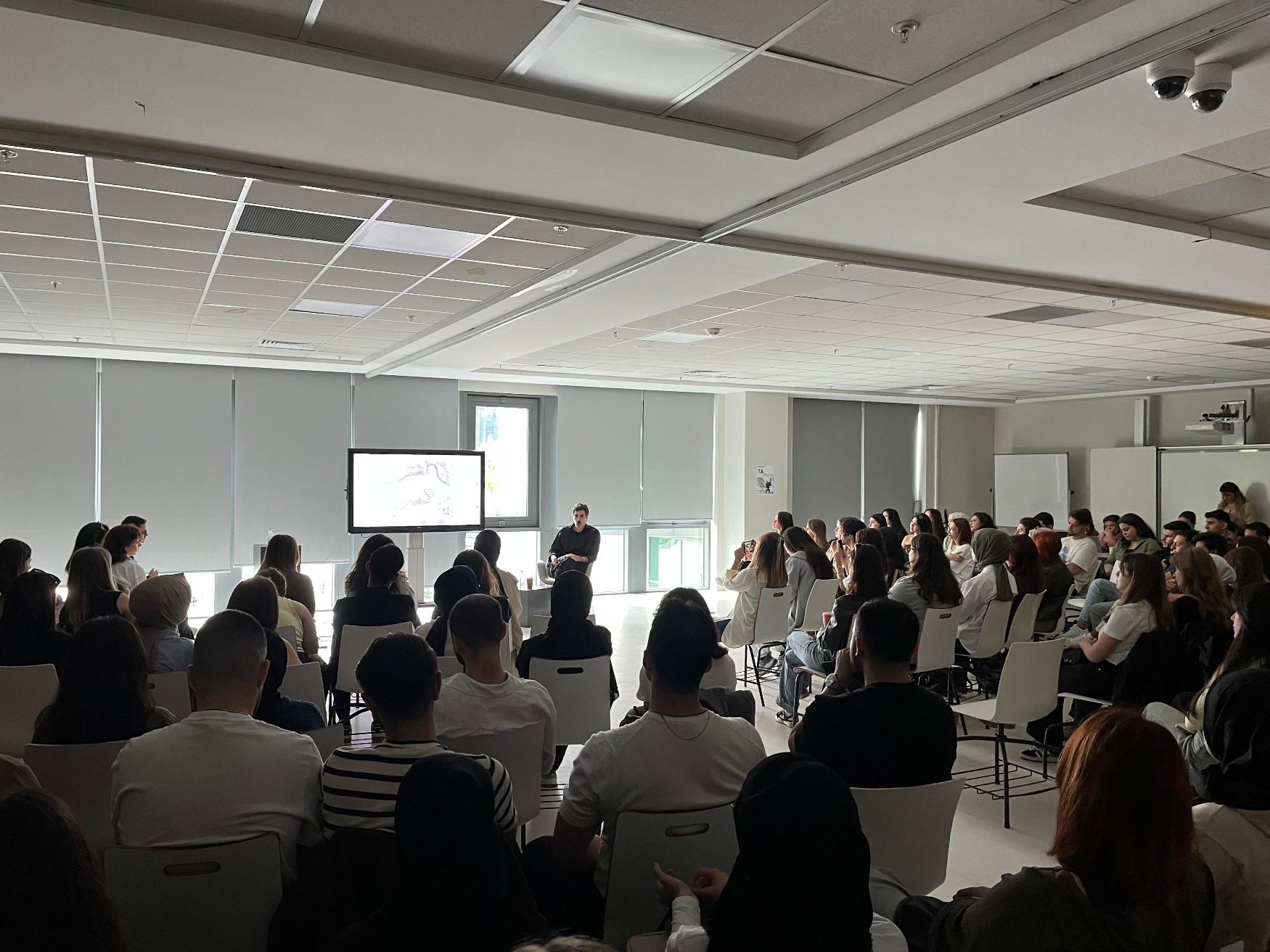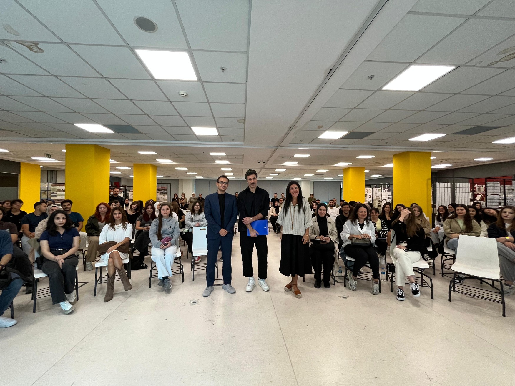 Mimarlık Fakültesi, İç Mimarlık ve Çevre Tasarımı Bölümü’nün 2025-2026 Güz Dönemi etkinlikleri kapsamında, Tabanlıoğlu Mimarlık’tan Partner Çağrı Akay, fakültemizde mimarlık, iç mimarlık ve tasarımın mesleki uygulamalarına dair kapsamlı bir sunum gerçekleştirdi. Fakültemiz öğretim üyeleri ve öğrencilerinin yoğun katılımıyla gerçekleşen etkinlikte, sunumun ardından düzenlenen söyleşi bölümünde öğrenciler, merak ettikleri konulara ilişkin sorular yönelttiler. Etkinlik, kolektif bir paylaşım ve etkileşim ortamı yaratarak, mimarlık, iç mimarlık ve tasarım pratiklerine dair çok yönlü bir tartışma zemini oluşturdu. Tabanlıoğlu Mimarlık’a ve Sayın Çağrı Akay’a değerli katkıları için teşekkür ederiz.
