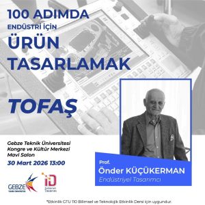 Mimarlık Fakültesi Endüstriyel Tasarım Bölümü hocalarımızdan Prof. Dr. Önder KÜÇÜKERKMAN’ın “100 Adımda Endüstri İçin Ürün Tasarlamak TOFAŞ” başlığı kapsamında yapacağı konuşma Gebze Teknik Üniversitesi Kongre ve Kültür Merkezi Mavi Salon’da 30 Mart 2026 günü saat 13:00’te gerçekleştirilecektir.
