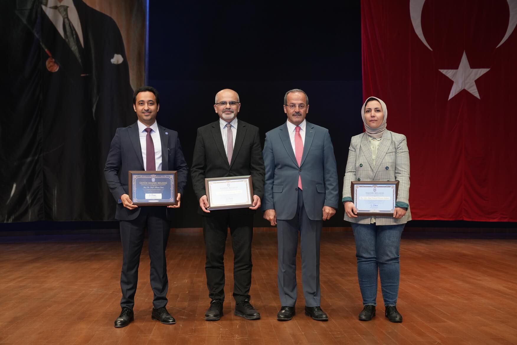 Akademisyenlerimizin cübbelerini giymelerinin ardından, teşvik ödüllerine ve özel başarı belgelerine layık görülen akademisyenlerin ödülleri takdim edildi. Üstün başarı belgesi, Doçent Doktor Alireza Souri, başarı belgeleri de Profesör Doktor Salaheddine Bendak ve Öğretim Görevlisi Monireh Norouzi Soufiani’ye takdim edildi.