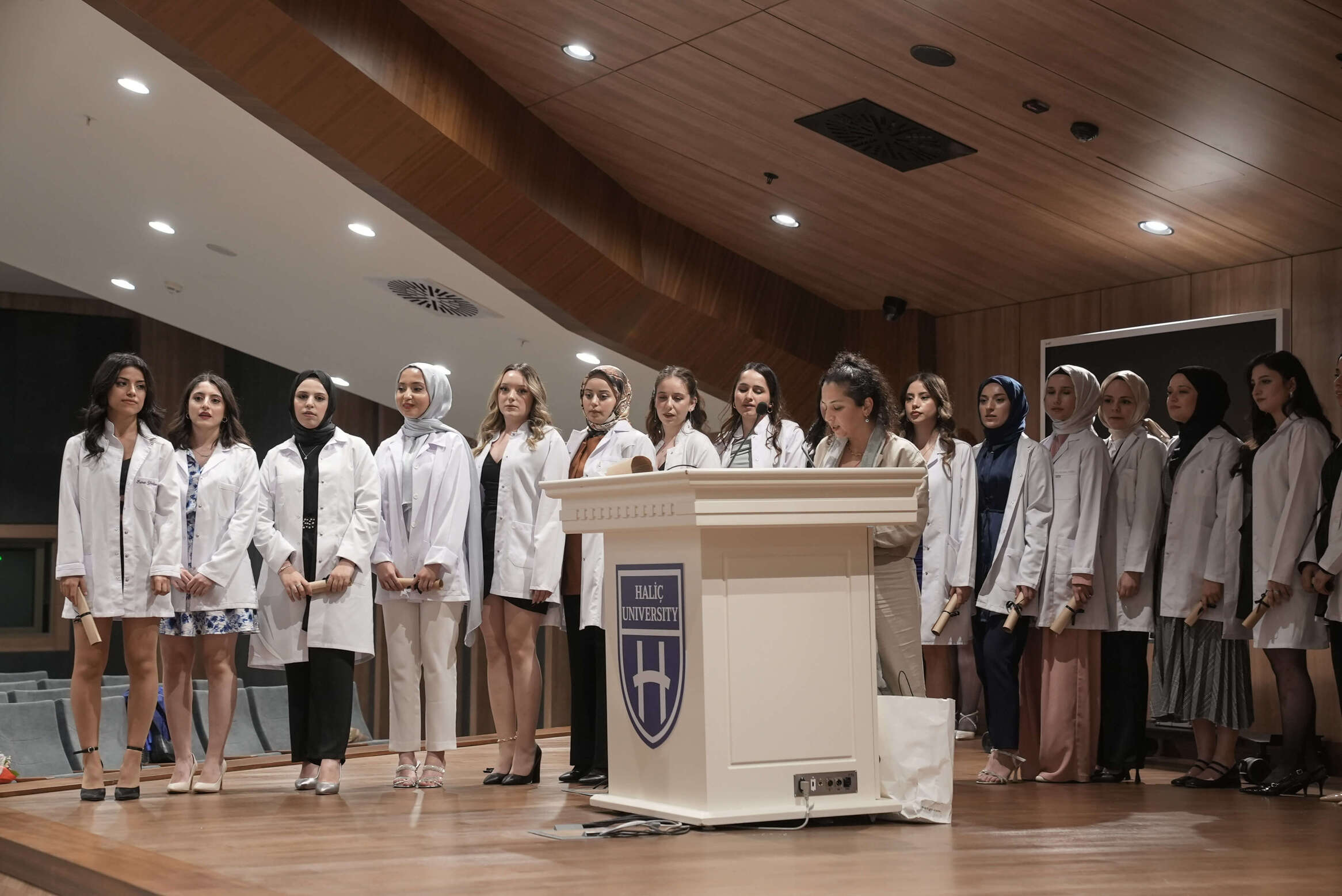 Haliç Üniversitesi Sağlık Bilimleri Fakültesi Ebelik Bölümü, öğrencileri için düzenlediği geleneksel Ebelik Andı ve Önlük Giyme Töreni’ni küçük konferans salonunda gerçekleştirdi. Bu anlamlı etkinlik, öğrencilerin mesleki hayatlarına ilk adımlarını atmaları açısından büyük önem taşıyor.