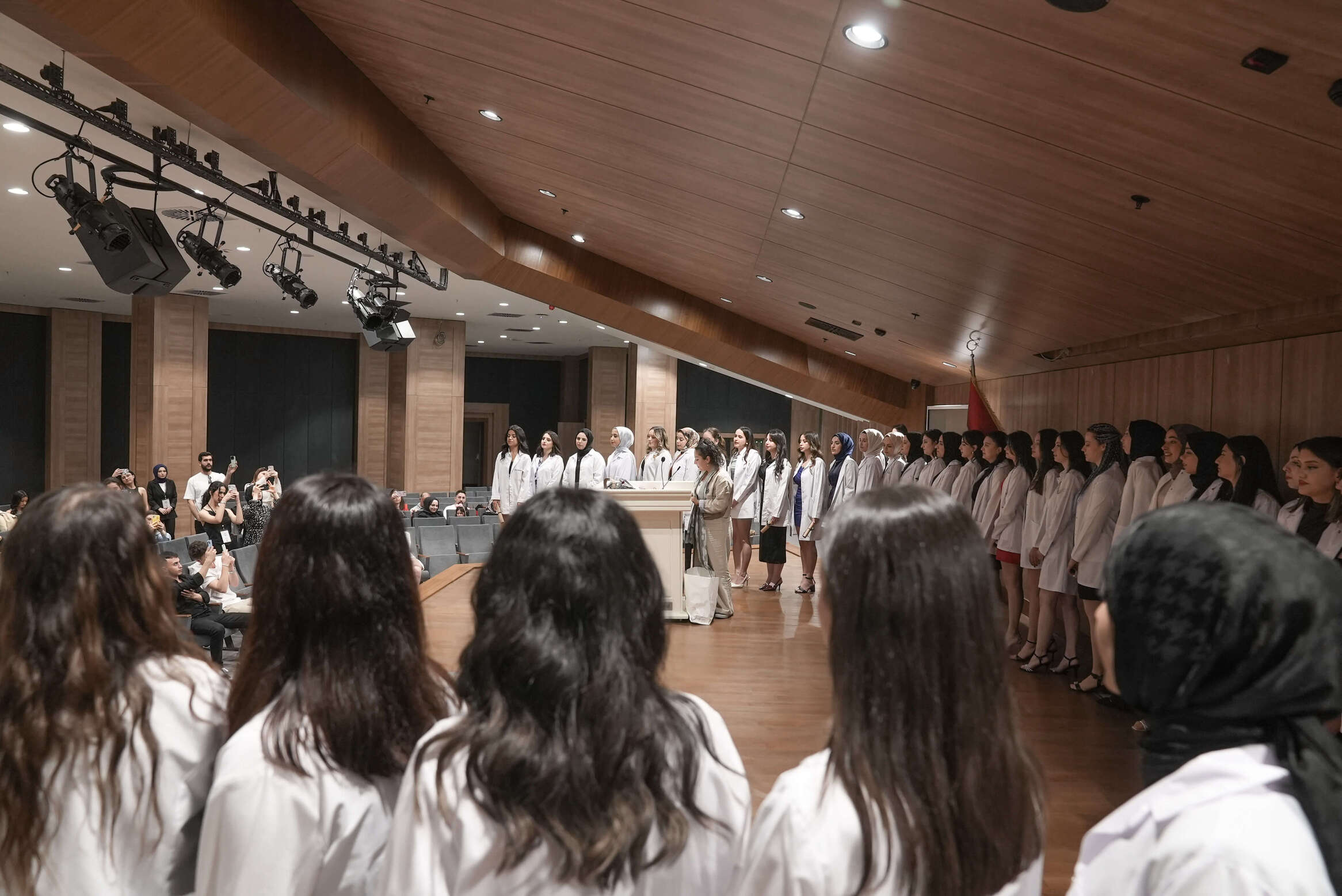 Programın ilerleyen anlarında, hocalarımız 4. sınıf öğrencilerine önlük giydirdi. Bu sembolik önlük giydirme töreni, öğrencilerin meslek hayatlarına adım atışlarını simgeliyor. Törenin ardından, hep birlikte Ebelik Andı okundu.