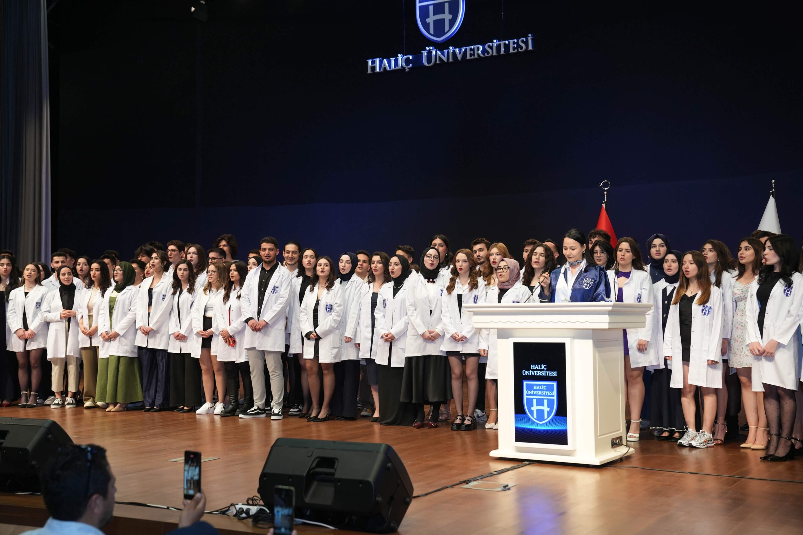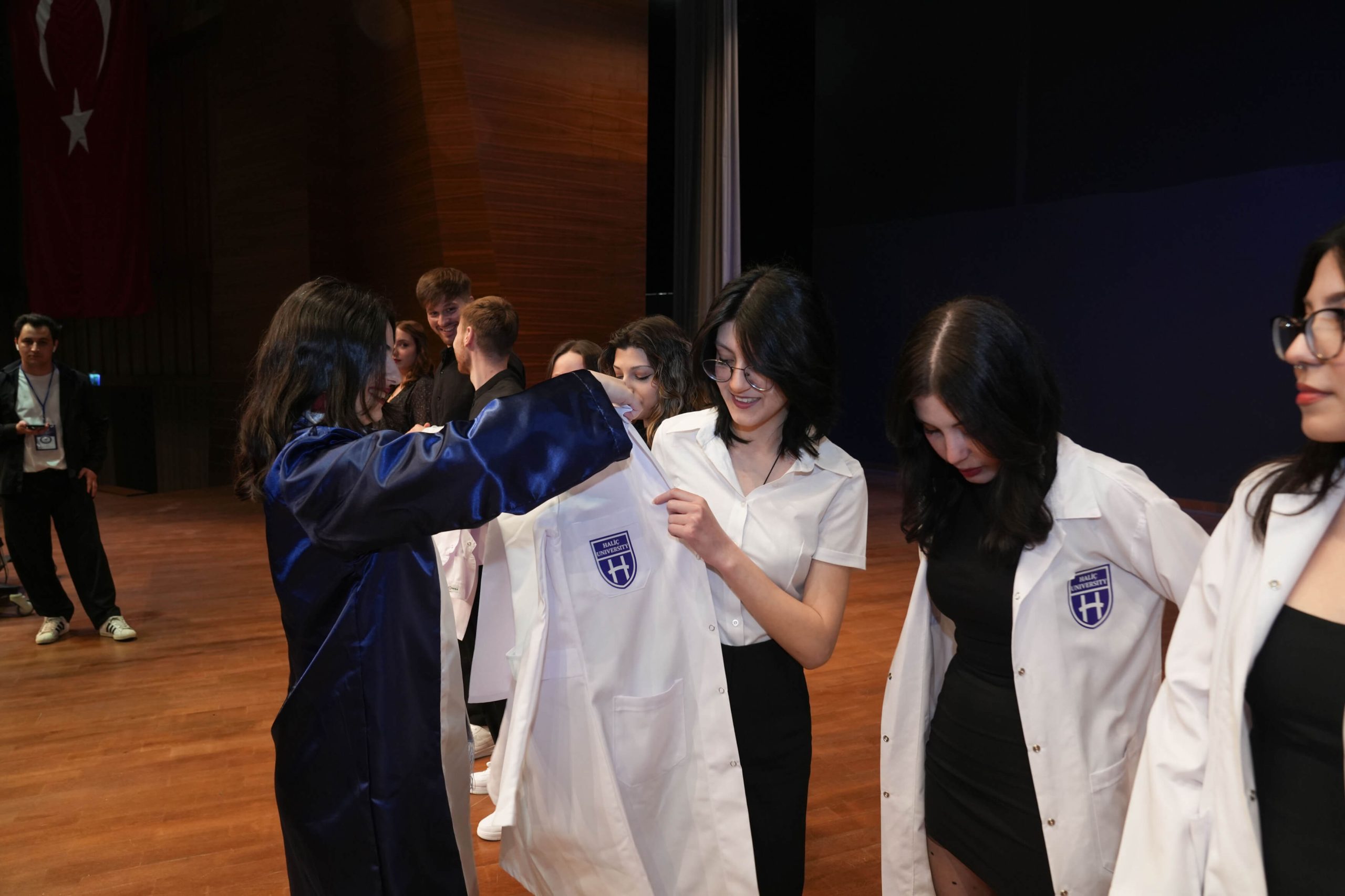 Türkçe ve İngilizce bölüm temsilcileri ve Girişimci Genç Fizyoterapistler Kulübü başkanının konuşmasının ardından öğrencilere sırasıyla akademisyenlerimiz tarafından beyaz önlükleri giydirildi. Öğrenciler, beyaz önlükleriyle yemin ettikten sonra tören sona erdi.