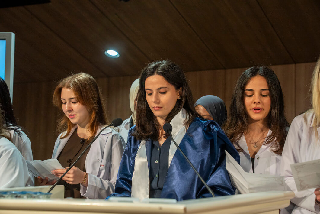 “Önlük giyme töreni, öğrencilerimiz ve bizler için son derece anlamlı ve kıymetli bir an. Bu özel günde, onların mesleki kimliklerine ilk adımlarını atmalarına tanıklık etmek bizlere büyük bir gurur ve mutluluk veriyor. Öğrencilerimize meslek hayatları boyunca etik değerlerden asla ödün vermemeleri gerektiğini bir kez daha hatırlatmak istiyorum”