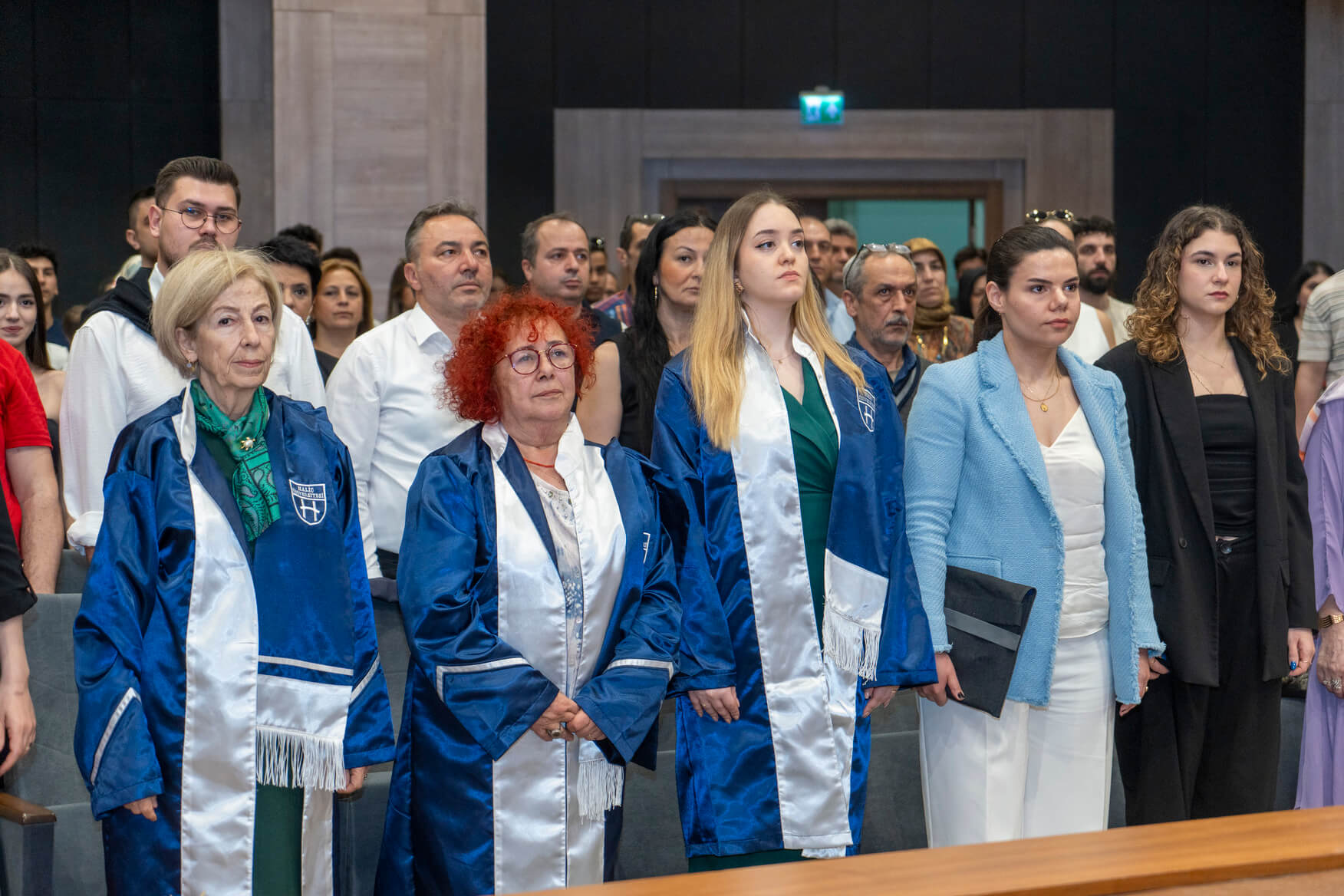 Akademisyenlerin diyetisyen adayı öğrencilere beyaz önlüklerini giydirdiği törende, yemin merasimi ve pasta kesiminin ardından İngilizce Bölümü’nün programı sona erdi.