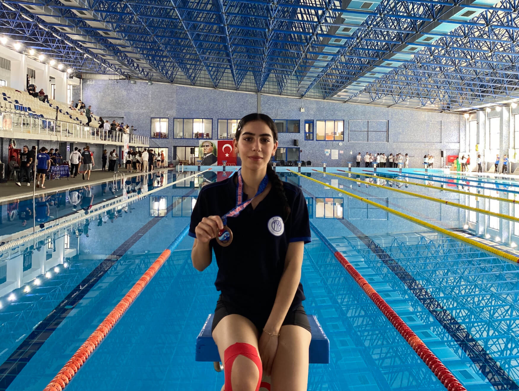 Antrenörlük Eğitimi Bölümü 1. sınıf öğrencimiz Elif Bilge Meydan, 2-6 Nisan 2025 tarihleri arasında Edirne'de gerçekleştirilen Paletli Yüzme Büyükler Türkiye Şampiyonası'nda;