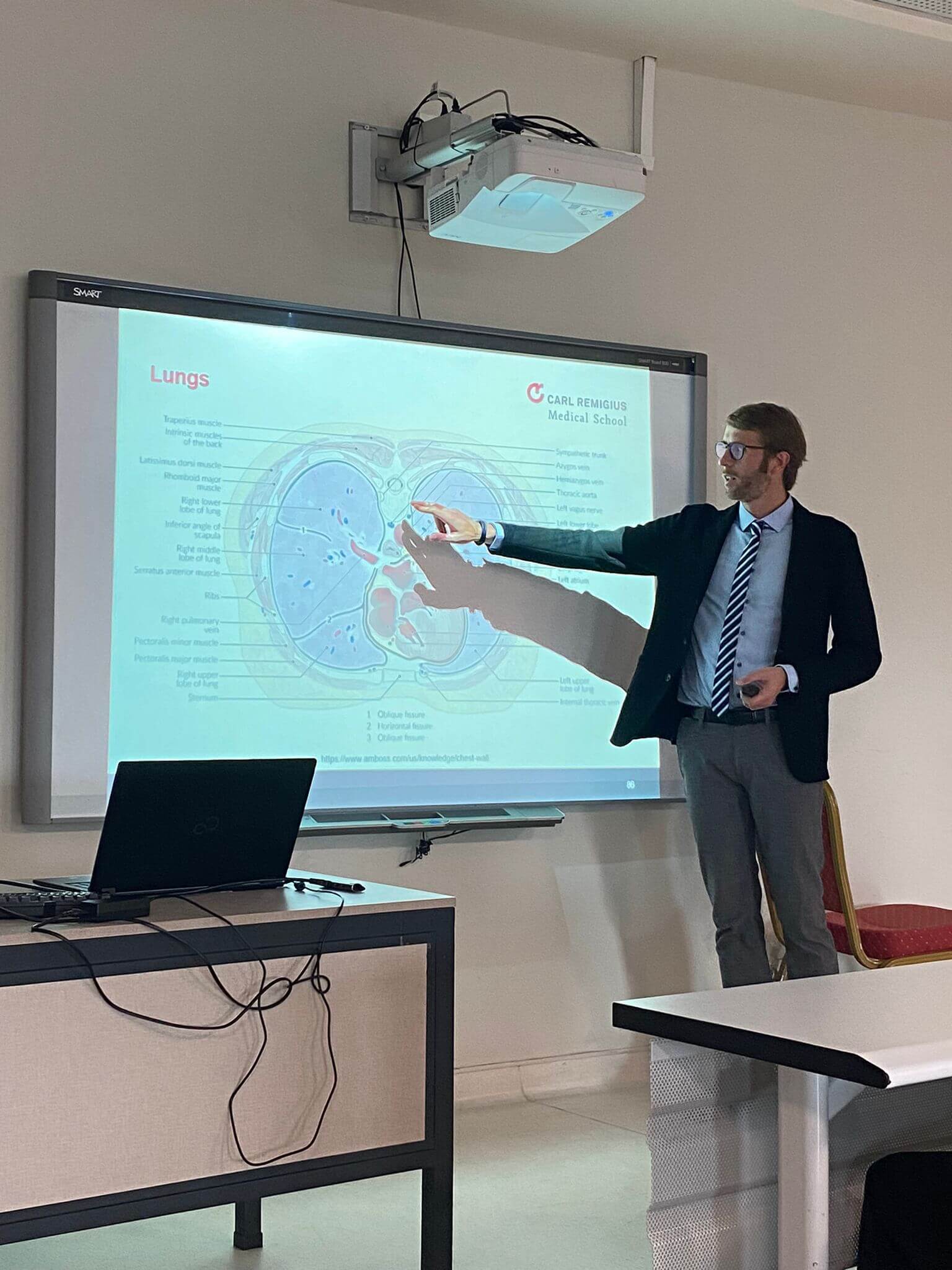 Erasmus değişim programı kapsamında misafir ettiğimiz Carl Remigius Medical School Öğretim Üyesi Prof. Dr. Michael Kaan, 26 Şubat-1 Mart tarihleri arasında Tıp Fakültemizde akademik çalışmalarda bulundu. Toraks ve Akciğer Anatomisi (Thorax and Lung Anatomy) ile Pulmoner Emboli ve Derin Ven Trombozu (Pulmonary Embolism and Deep Venous Thrombosis) konularında öğrencilerimize İngilizce seminerler verdi. Misafir hocamız, Haliç Üniversitesi’nin “All In One” konseptli kampüsünde öğrencilere fakültesini tanıtarak, sosyal aktivitelere de katıldı.