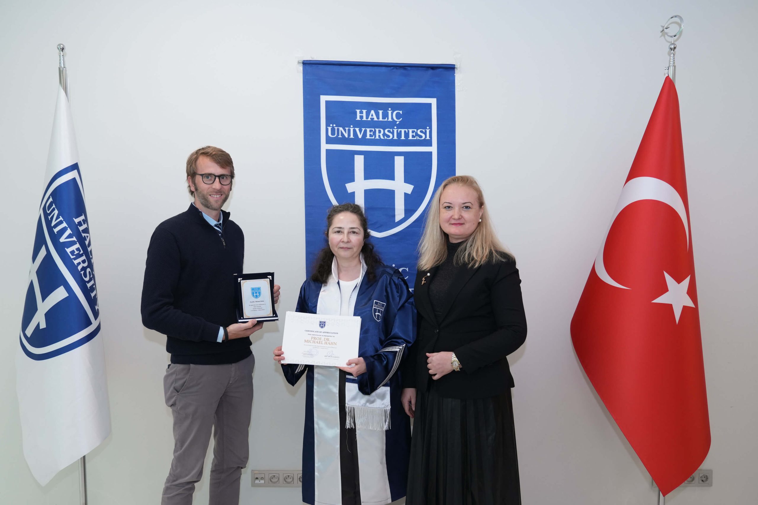 Seminerlerin ardından düzenlenen törende, Erasmus Koordinatörü Prof. Dr. Zehra Bayramoğlu ile birlikte Tıp Fakültesi Dekanımız Prof. Dr. Ece Salihoğlu tarafından Prof. Dr. Michael Kaan’a plaket takdim edildi.