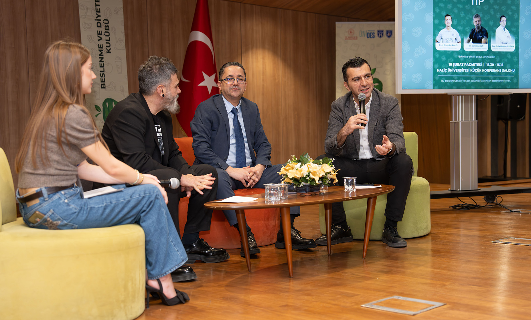 Üniversitemiz Beslenme ve Diyetetik Öğrenci Topluluğu öncülüğünde gerçekleştirilen, Gençlik ve Spor Bakanlığı tarafından ulusal proje kategorisinde desteklenen Sporcu Sağlığı Sempozyumu, uzman isimleri ve milli sporcuları kampüsümüzde buluşturdu. Sempozyum, Fizyoterapi, Psikoloji, Spor, Tıp ve Diyetetik başlıklarında düzenlenen beş oturumla Küçük Konferans Salonu’nda gerçekleşti.