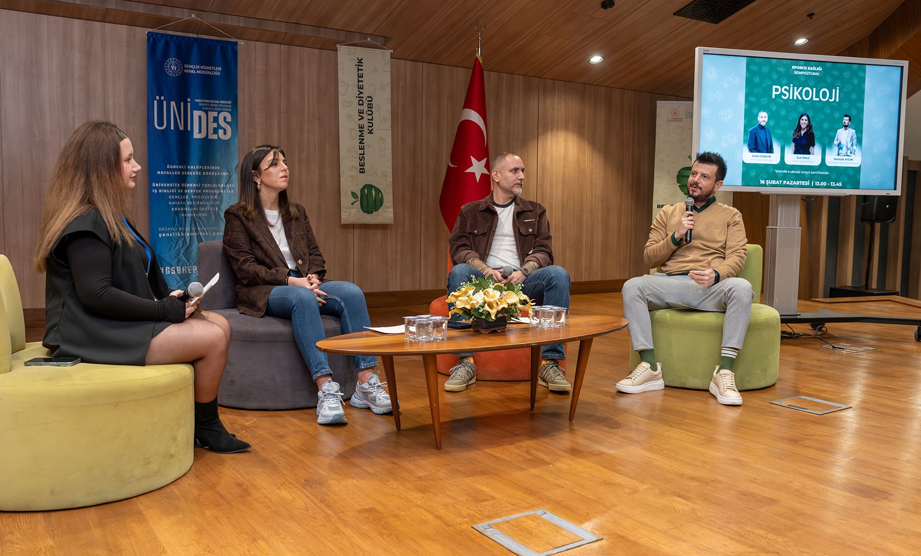 Psikoloji oturumuna Uzman Spor Psikologları Arda Coşkun, Ece Ünlü ve Psikoterapist/Performans Danışmanı Mustafa Aydın konuşmacı olarak katıldı. Oturumda sporcuların psikolojik dayanıklılığının performans üzerindeki belirleyici rolü ele alındı. Arda Coşkun, sporcuyu psikolojik açıdan desteklemenin özellikle olumsuz deneyimler karşısında güçlü kalabilmesi ve kendi potansiyelini keşfedebilmesi açısından büyük önem taşıdığını vurguladı. Mustafa Aydın ise psikolojik desteğin sporcuyu travmalara karşı daha dirençli hale getirdiğini, değişen koşullara uyum sağlayabilmesi için problem çözme becerilerini geliştirdiğini ve bu sayede sporcunun sürdürülebilir biçimde en iyi performansını ortaya koyabildiğini ifade etti. Ece Ünlü de sporcunun sahip olduğu içsel ve dışsal kaynakları fark etmesinin özgüveni artırdığını, bu farkındalığın rahatlık sağladığını ancak performansın korunabilmesi için özgüven ile denge arasında sağlıklı bir uyum kurulması gerektiğine dikkat çekti.