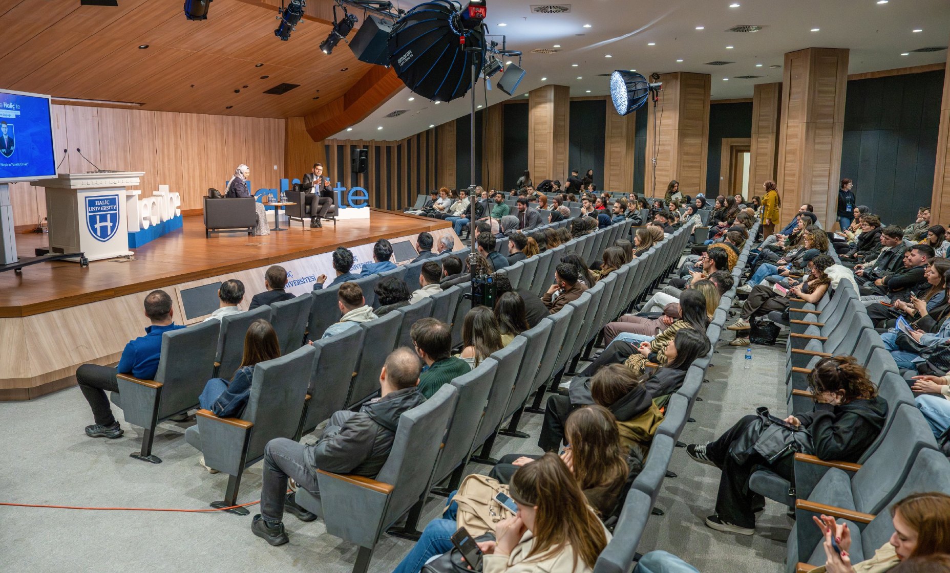 “Tecrübe Haliç’te” serimizin bu haftaki konuğu, Cumhurbaşkanlığı Yatırım ve Finans Ofisi Başkanı Ahmet Burak Dağlıoğlu oldu. İşletme Bölümü akademisyenimiz Doç. Dr. Merve Kekeç’in moderatörlüğünde gerçekleştirilen programa akademisyenlerimiz ve öğrencilerimiz yoğun ilgi gösterdi.