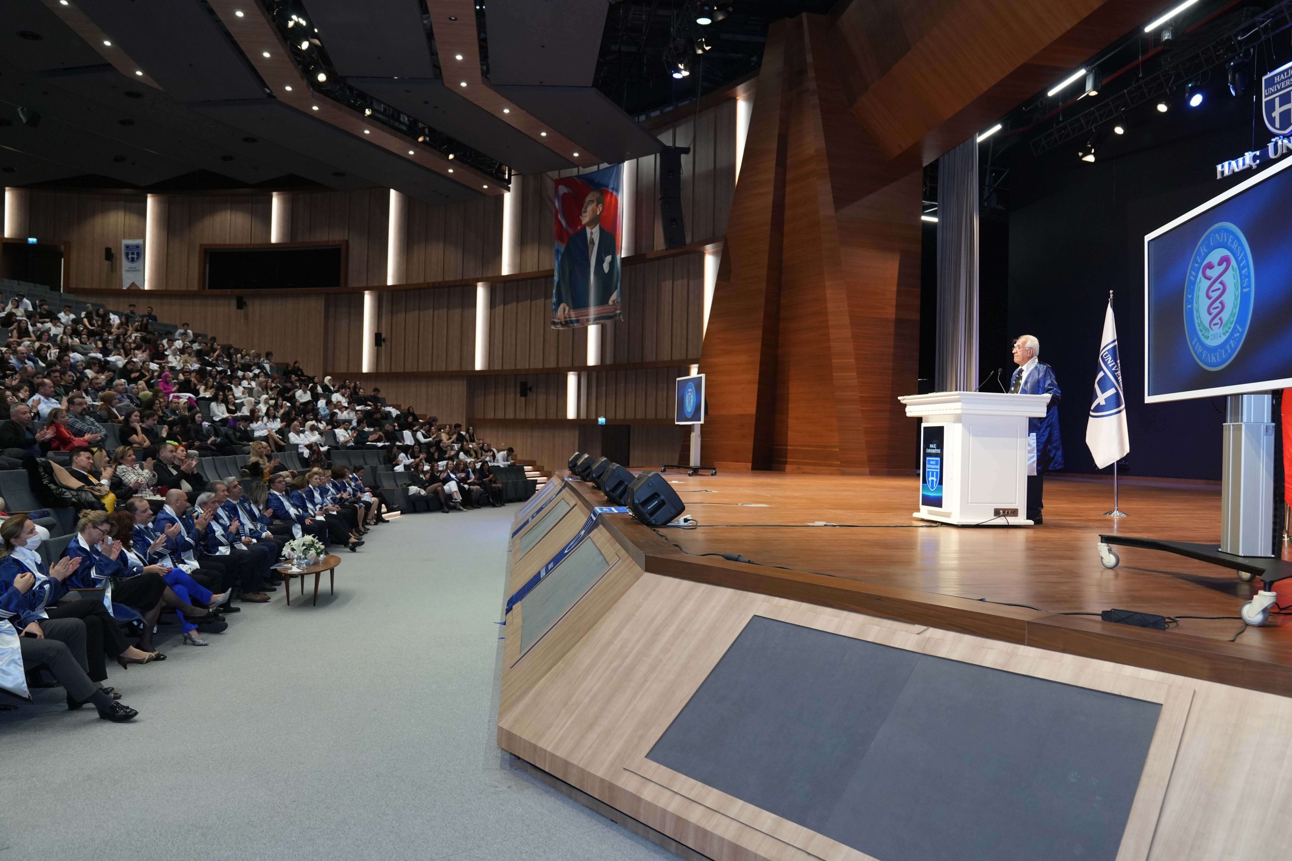 Tamamlanan konuşmaların ardından tören, genç hekim adaylarının beyaz önlük giymeleri ile sonlandı.