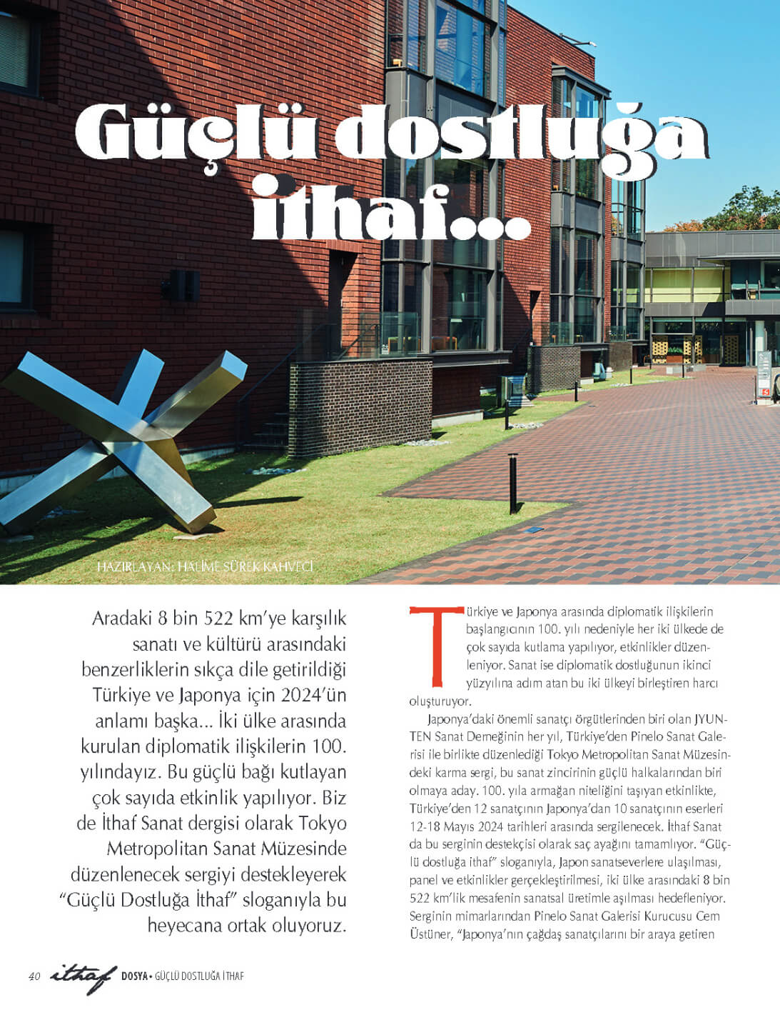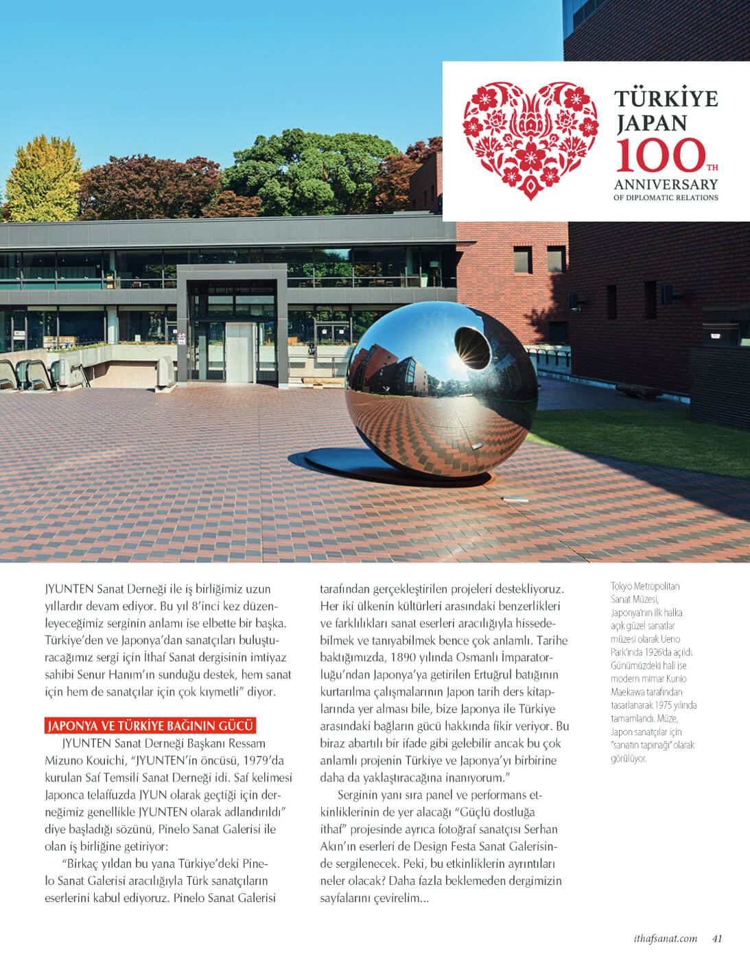 Türkiye ve Japonya arasında diplomatik ilişkilerin başlangıcının 100. yılı nedeniyle her iki ülkede yapılan kutlamalara ek olarak sanatın da diplomatik dostluğa yaptığı katkıyla ikinci yüzyıla adım atılıyor.