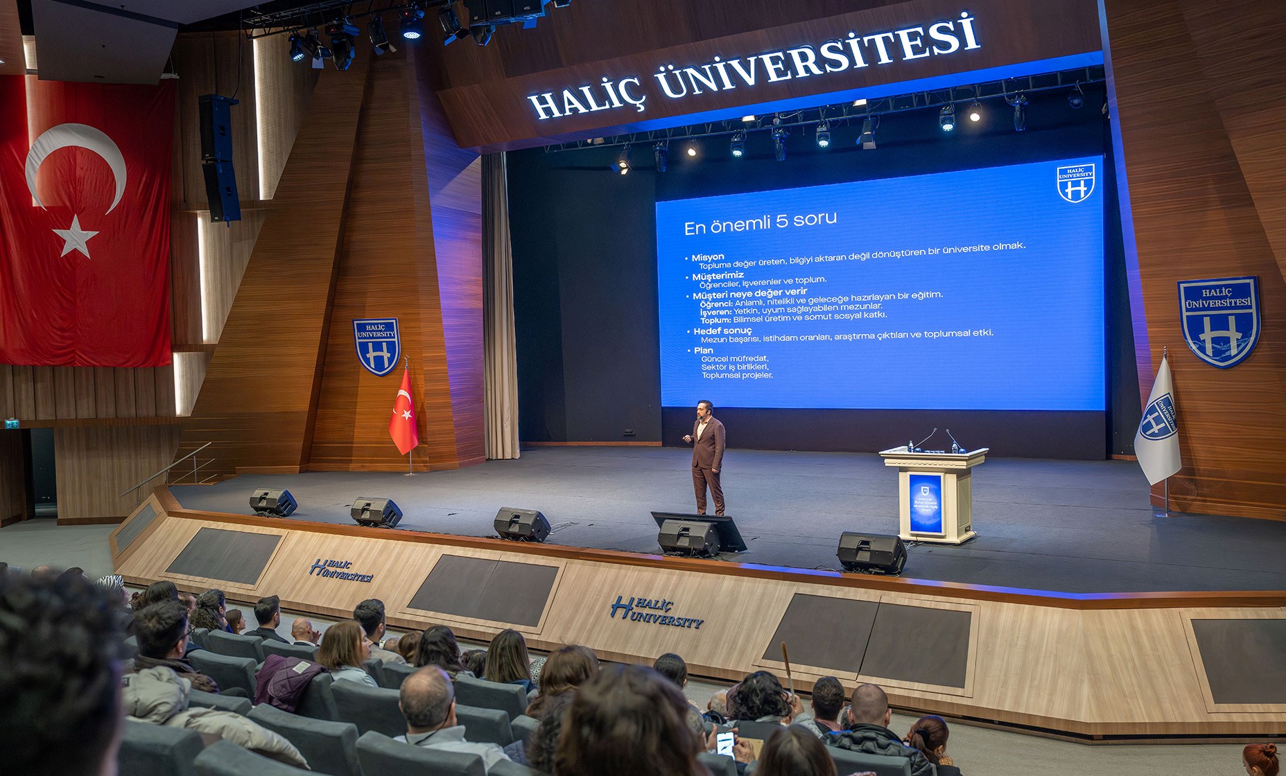 Eğitim vizyonunu paylaşan Rektör Yardımcımız Prof. Dr. Öykü İyigün, stratejik hedefin küresel dinamiklere uyum sağlayabilen ve istihdam edilebilirliği yüksek mezunlar yetiştirmek olduğunu belirtti. Bu kapsamda yetkinlik temelli eğitim tasarımının uygulanacağını, proje ve sektör iş birliklerinin artırılacağını söyledi. Tamamlayıcı sertifika programları ile girişimcilik ve yapay zeka okuryazarlığının da eğitim modelinin önemli bileşenleri arasında yer alacağını dile getirdi.